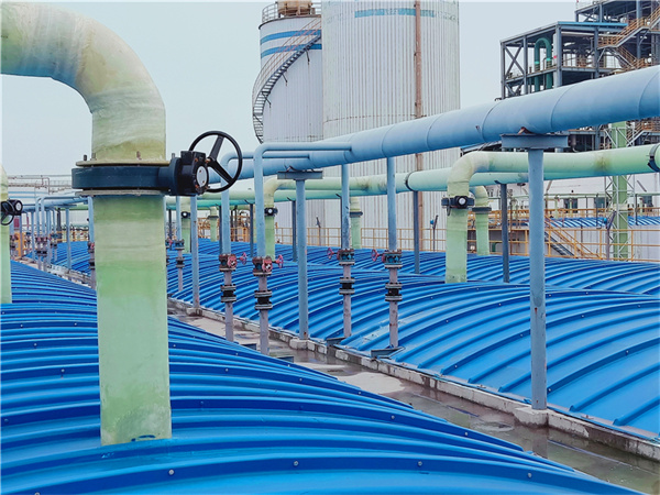 玻璃钢污水池盖主要用于污水处理系统工程及石油化工等多个领域。其主要功能是密封污水池和氧化沟,有效防止臭气的散发。此外,盖板还特别设计了排气口,通过管道将臭气引导至除臭设备进行处理,进一步确保了环境的清新与安全。